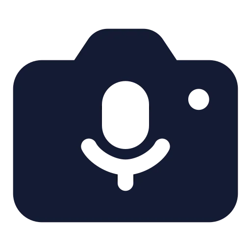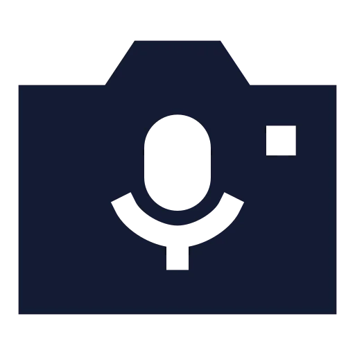 The camera-microphone-01 icon in solid standard style belongs to the standard category. You can customize its size, color, and style, then download or use it directly in your design or development projects.