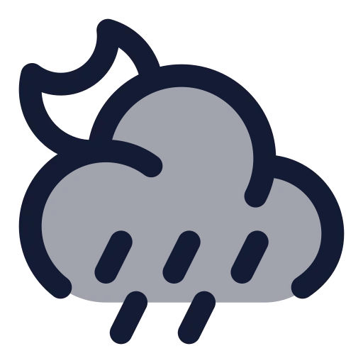 moon-cloud-angled-rain Icon in Solid Rounded