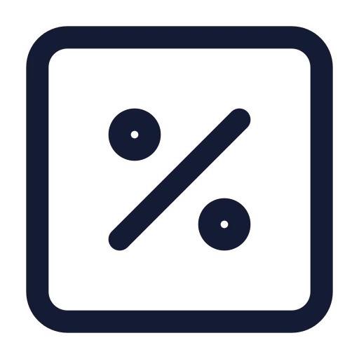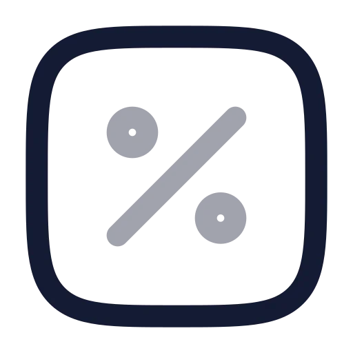 The percent-square icon in bulk rounded style belongs to the rounded category. You can customize its size, color, and style, then download or use it directly in your design or development projects.